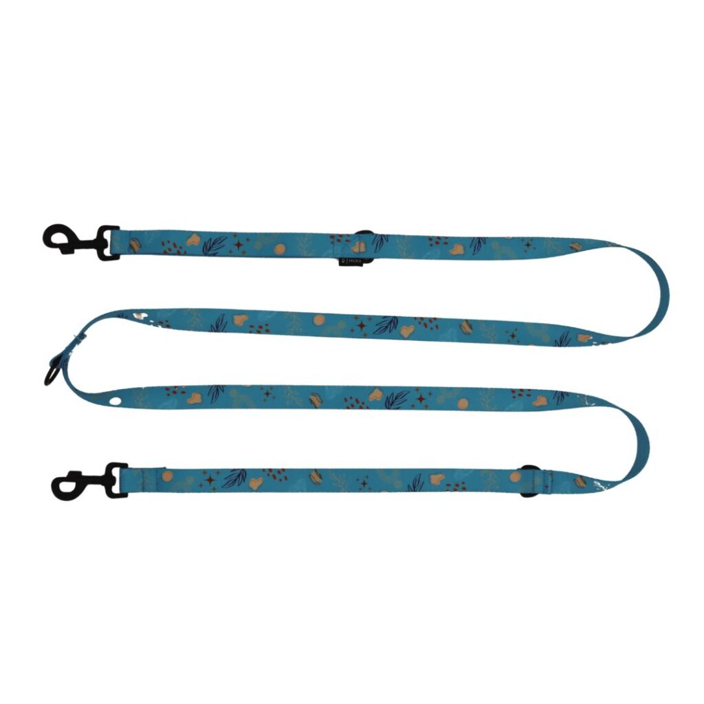 Podczas gdy smycz miejska narzuca stały dystans, model przepinany to rozwiązanie hybrydowe, które płynnie dostosowuje się do otoczenia. Jej konstrukcja opiera się na systemie dwóch karabińczyków i zestawie zgrzewanych kółek (okuć) rozmieszczonych na całej długości taśmy. Dzięki temu, jedno akcesorium oferuje pełną skalowalność w zakresie od 150 cm do nawet 300 cm, zmieniając swoją funkcję w zależności od potrzeby chwili.